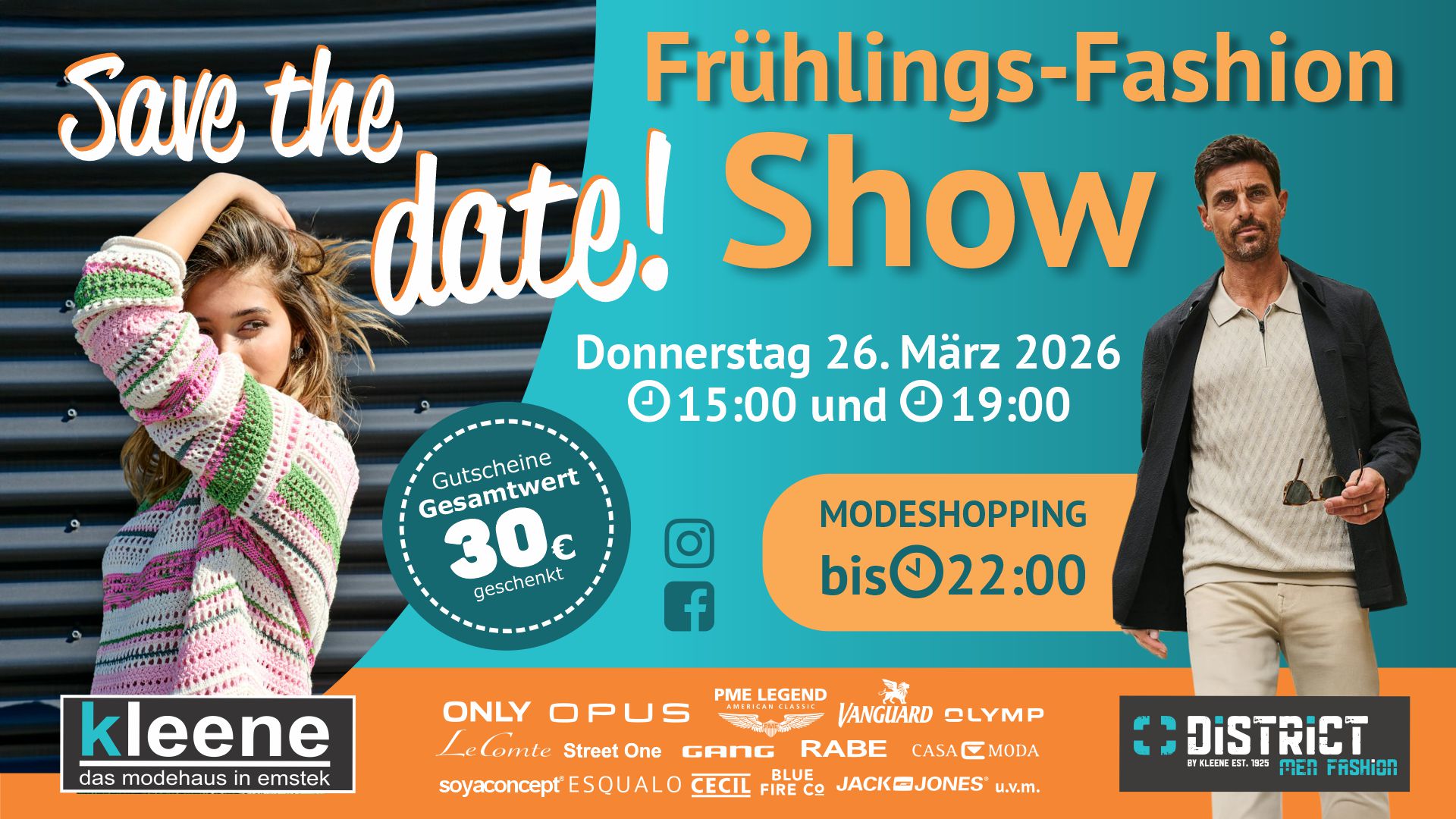 Das Emsteker Familiensparbuch lockt wieder mit zahlreichen Spar-Aktionen aus allen Branchen. Wir haben für das Modehaus Kleene und DISTRICT wieder tolle Coupons für Sie, mit bis zu 50% Rabatt.