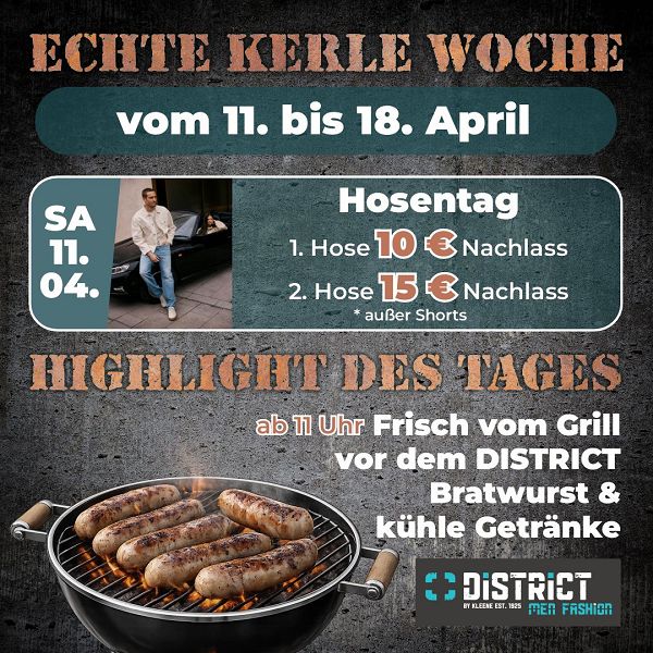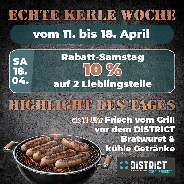 Beide Samstag grillen wir vor dem DISTRICT – mit Bratwurst und kühlen Getränken. Einfach vorbeikommen und genießen!